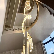 旋转楼梯吊灯客厅灯公寓别墅复式楼大厅楼中楼中空水晶挑高长吊灯