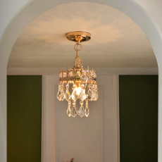 全铜轻奢水晶小冰山玄关装饰小吊灯高级感氛围卧室艺术床头吊线灯