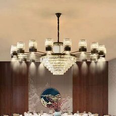 新中式水晶吊灯客厅饭店包厢酒店宴会厅别墅餐厅大圆桌灯具带射灯