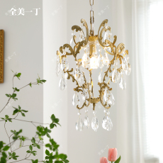 法式水晶灯玄关小吊灯轻奢全铜过道走廊灯阳台灯网红卧室床头吊灯