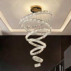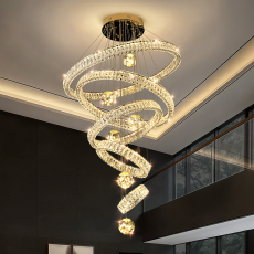 别墅挑空客厅吊灯轻奢高档楼中楼跃层挑高水晶灯复式楼中空大吊灯