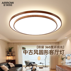 箭牌中古风圆形客厅主灯2026新款胡桃木色家用卧室大气护眼吸顶灯