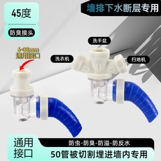 45度墙排专用牛角下水三通防反臭神器管道洗衣机止逆阀斜插密封塞