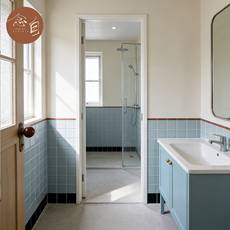 沁蓝手工砖盐系卫生间瓷砖浴室海洋蓝色红腰线条厨房白色柔光墙砖