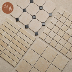 法式米色仿洞石材长条瓷砖马赛克踢脚线卫生间地砖店铺背景墙砖