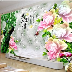 新中式卫生间浴室个性艺术植物花鸟背景墙瓷砖柔光砖大板壁画定制