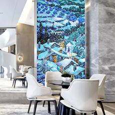 雪中屋子蓝色马赛克瓷砖背景墙简约现代客厅玄壁画关过道剪画拼图
