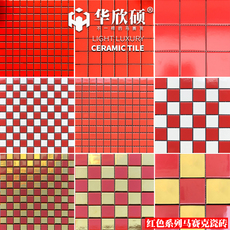 华欣硕红色马赛克陶瓷瓷砖电视背景墙网红卫生间浴室餐厅地墙红砖