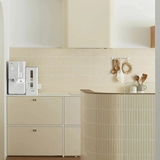 日式奶油米白色长条马赛克瓷砖卫生间浴室厨房吧台背景墙弧形砖