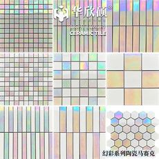 玻璃马赛克瓷砖彩色浴室卫生间背景墙喷水池防滑地砖酒店轻奢墙砖