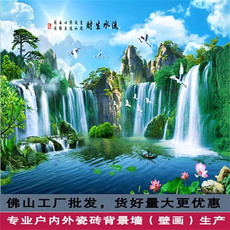 户外墙砖瓷砖背景墙影壁墙农村别墅庭院山水花鸟大福字迎门墙壁画