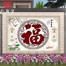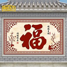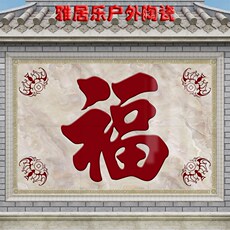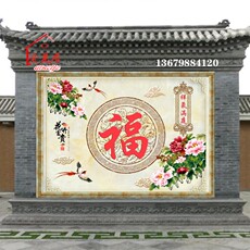 定制农村庭院影壁墙画瓷砖背景墙迎宾墙迎门墙大福字图案尺寸定制