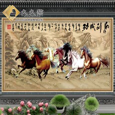 瓷砖背景墙玉雕八骏图 客厅电视墙 背景壁画现代 马到成功