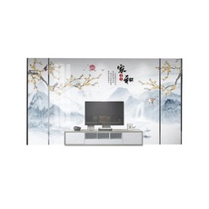 新中式电视背景墙岩板瓷砖微晶石现代简约山水画岩板影视墙大理石