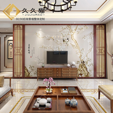 中式入户过道客厅阳台手绘花鸟图喜上梅梢玄关瓷砖岩板背景墙定制