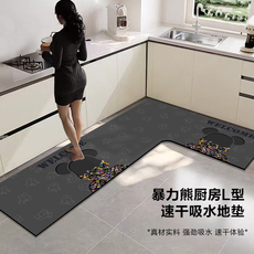 暴力熊厨房地垫L形硅藻泥防滑防油脚垫可擦免洗耐脏专用防水地毯