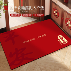 硅藻泥中式红色喜庆家用入户门地垫进门玄关脚垫乔迁之喜防滑地毯