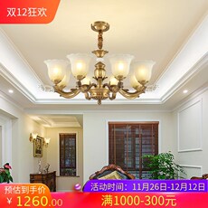 美式全铜吊灯欧式奢华客厅灯餐厅卧室灯简约书房灯饰灯具W116