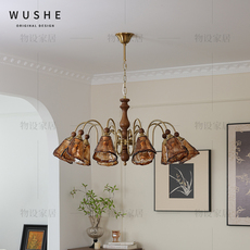 客厅吊灯中古北欧法式复古美式创意魔豆卧室餐厅书房实木全光谱灯
