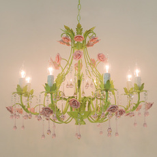 绿色田园水晶轻奢吊灯铁艺客厅餐厅灯饰温馨女孩卧室玫瑰吊坠灯具