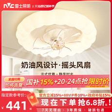 美的摇头风扇灯吊灯奶油风主灯现代简约灯具卧室餐厅灯法式客厅灯