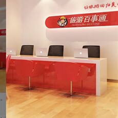 携程旅游服务台旅行社接待台前台办公桌展柜吧台咨询收银台等