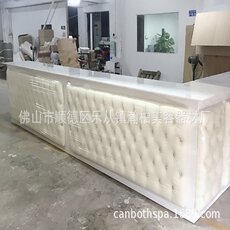 瀚柏简约吧台 桌子前面软包水晶拉扣 吧台桌面爵士白大理石面