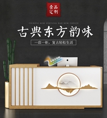 定制新中式古典网红收银台足疗养生美容餐厅前台接待柜台异形吧台