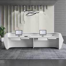 弧形公司前台接待台简约现代白色烤漆办公桌吧台美容院柜台收银台