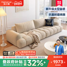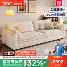 帕沙曼 棉麻布艺沙发泡芙棉花糖法式奶油风客厅云朵沙发直排乳胶