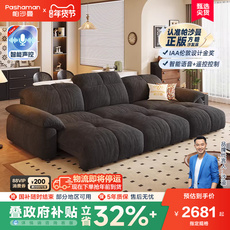 帕沙曼电动沙发布艺大小户型客厅复古风可调节棉花糖功能沙发黑色