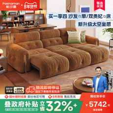 帕沙曼电动沙发床布艺小户型客厅复古棉花糖伸缩零靠墙功能沙发