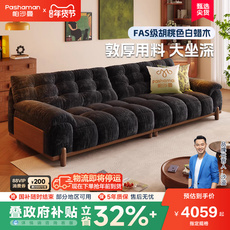 帕沙曼云朵布艺沙发小户型客厅新款复古棉花糖实木沙发雪尼尔黑色