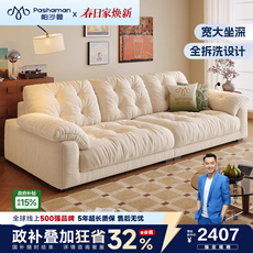 帕沙曼布艺沙发棉花糖泡芙日式原木风小户型客厅奶油云朵实木沙发