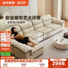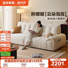 全友家居复古奶油风雪尼尔猫抓布艺沙发可拆洗客厅直排云朵沙发