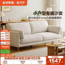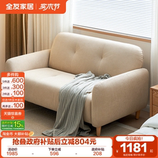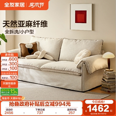 全友家居奶油风亚麻布艺沙发可拆洗小户型客厅复古风落地直排沙发