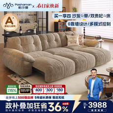 帕沙曼功能沙发电动布艺小户型客厅复古奶油风可调节棉花糖沙发