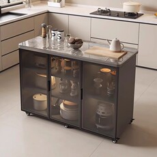 餐边柜家用茶水柜定制厨房橱柜岩板酒柜长虹玻璃门推拉门置物柜子