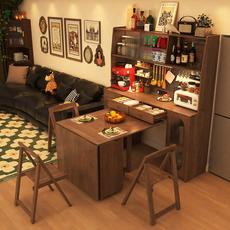 新型实用木餐边柜一体靠墙家用客厅厨房茶水柜中古风多功能储物柜