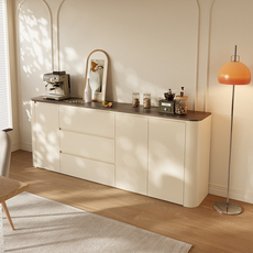 奶油风岩板餐边柜现代简约新款客厅储物柜厨房碗柜靠墙一体茶水柜
