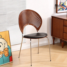 朗小木北欧轻奢家用实木餐椅ins设计师餐厅太阳椅子网红贝壳椅