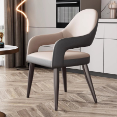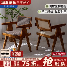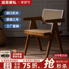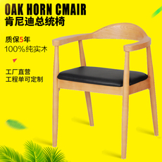 北欧真皮设计师进口实木餐椅简约扶手椅子中古风餐桌椅茶椅总统椅