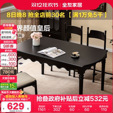 全友家居美式复古餐桌椅2025新款客厅家用实木腿黑色长方形饭桌