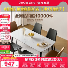 全友家居现代简约岩板餐桌家用客厅轻奢高级感小户型长方形饭桌椅