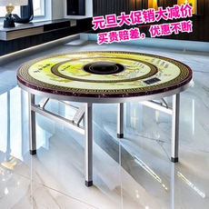 加厚不锈钢折叠大圆桌家用餐桌带转盘烧烤桌子酒席吃饭圆台大桌子