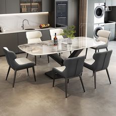 鲁菲特轻奢微晶石餐桌小户型又脚饭桌长方形家用餐厅餐桌椅组合