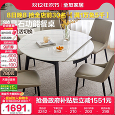 政府补贴全友家居现代简约岩板餐桌客厅家用可伸缩可变圆饭桌椅