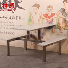 林感食堂餐桌椅不锈钢餐厅桌椅快餐桌椅连体防火板四人位饭厅桌椅