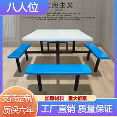 工厂食堂连体快餐桌椅学校食堂餐桌椅4人6人8人位连体不锈钢餐桌