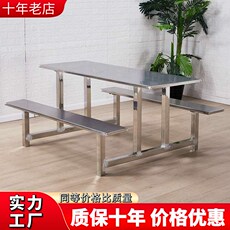 食堂餐桌椅组合学校学生员工工厂饭堂4人6人8人位 不锈钢连体桌子